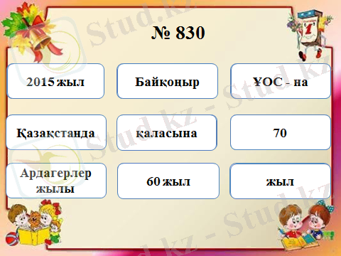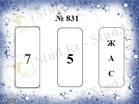 Оқушылар үш топқа бөлініп, әрқайсысы өз есебін жазады. Егер есеп дұрыс шығарылса, жасырын сөйлемді оқимыз.