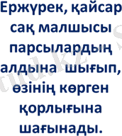 Күтілетін нәтиже: оқушылар сақ тайпасы туралы мәлімет алады, тұрмыстық жағдайы мен басқару ісі туралы зерттейді, тәуелсіздік үшін күресінің мәнін түсінеді.