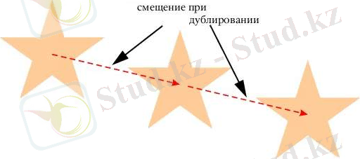 Объектінің дубликатын жасауДубликат жасағанда объект алмасу буферіне түспей тікелей сурет салу терезесінде пайда болады. Дубликат жасау көшірмесін алғаннан және қиып алғаннан тез орындалады. Онан басқа, объектіге дубликат жасағанда оның х және у осьтері бойында бастапқы қалпы мен дубликат жасалған ара қашықтығын көрсетуге болады, Бұл арақашықтық орын ауыстыру деп аталады.