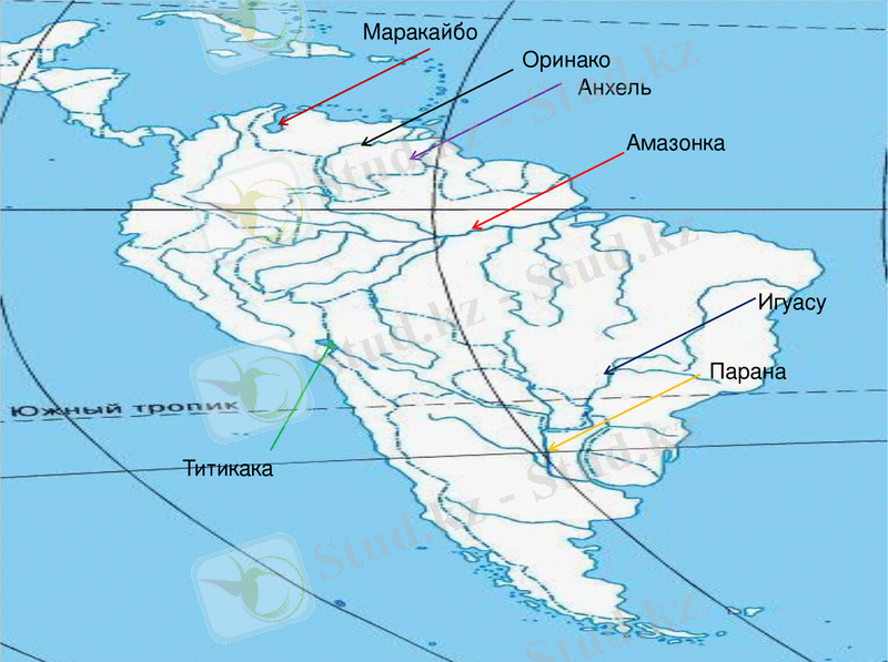 Сендер Оңтүстік Америка жеріне жауын-шашынның мол түсетінін білесіңдер. Сондықтан Жер шарындағы ең беткі суға бай материк болып табылады.