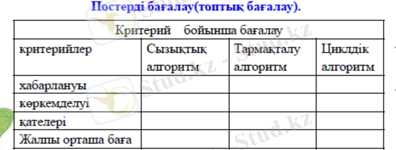 Постерді бағалау (топтық)