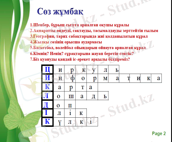 - «Миға шабуыл» әдісіарқылы «Сөзжұмбақ» шешу.