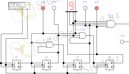 Теориясы: Санауыш - ЭЕМ функционалды түйіні, кірісіне келіп түскен сигналдар санын санауға және оны n-разрядты екілік код түрінде беруге арналған. Санауыш санайтын максимальды сан N=2 n санау коэффициентін құрайды, мұндағы N - Санауыш разрядтылығы. Санауыштар біртактылы екісатылы Т-триггерлерінде құрылады.