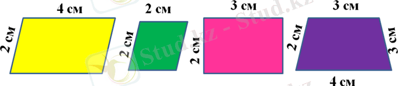Суреттегі төртбұрыштардың қайсысының периметрін көбейтудің үлестірімділік қасиетін қолдану арқылы табуға болады? Сол төртбұрыштардың периметрлерін тап.