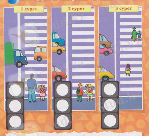 - Интербелсенді тақтадағы тапсырманы орындау. Онда көшедегі жағдайларға байланысты бағдаршамның көздерін сәйкестендіру.