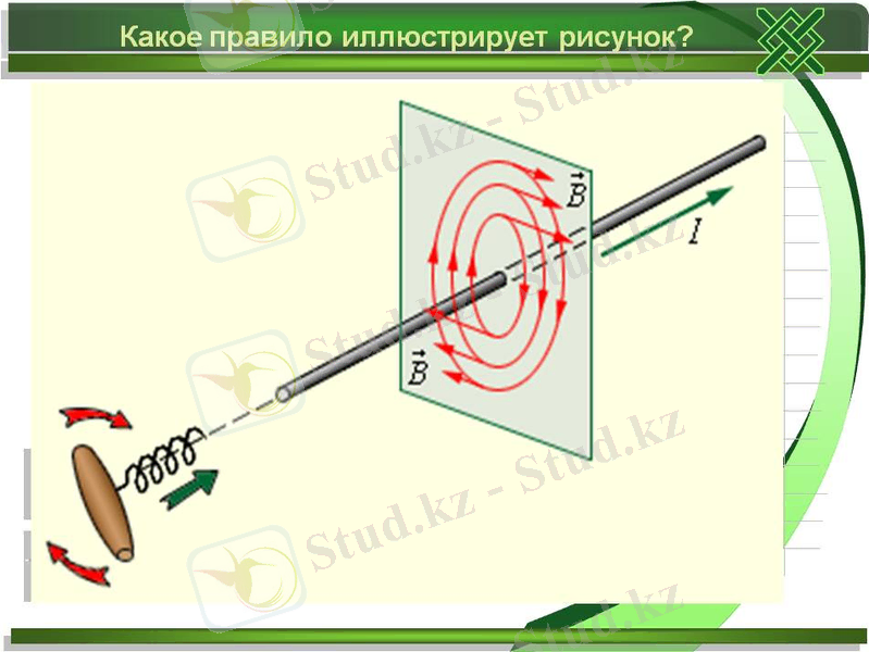 «Бұрғы ережесі»: Бұрғы ережесі бойынша, егер бұрғының ұшын ток бағытымен бағыттасақ, онда оның сабының айналу бағыты магнит өрісі күш сызықтарының бағытын береді.