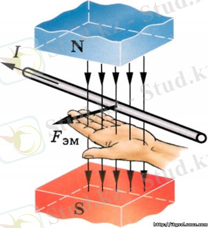 3. Біртекті магнит өрісінде орнатылған тогы бар түзу өткізгішке әсер ететін Ампер күшінің бағыты