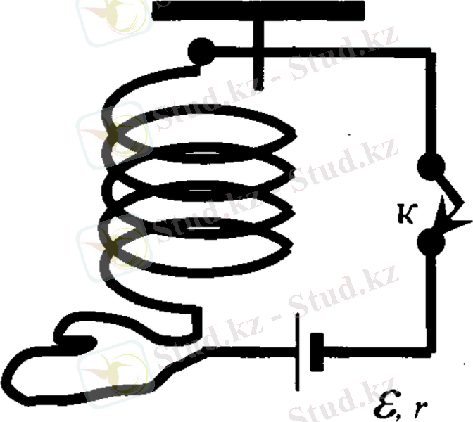1 төбеге суретте көрсетілгендей жұмсақ сымнан жасалған серіппе бекітілген. К кілтті қосқанда серіппенің ұзындығы қалай өзгереді? Жауаптарың дәлелдеңдер.