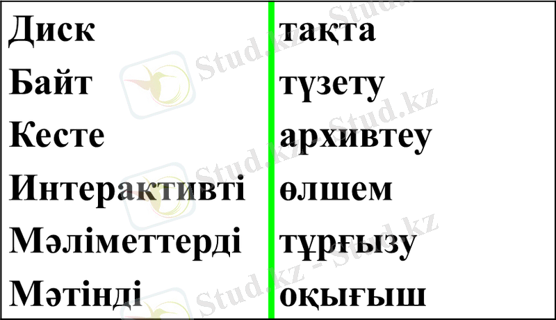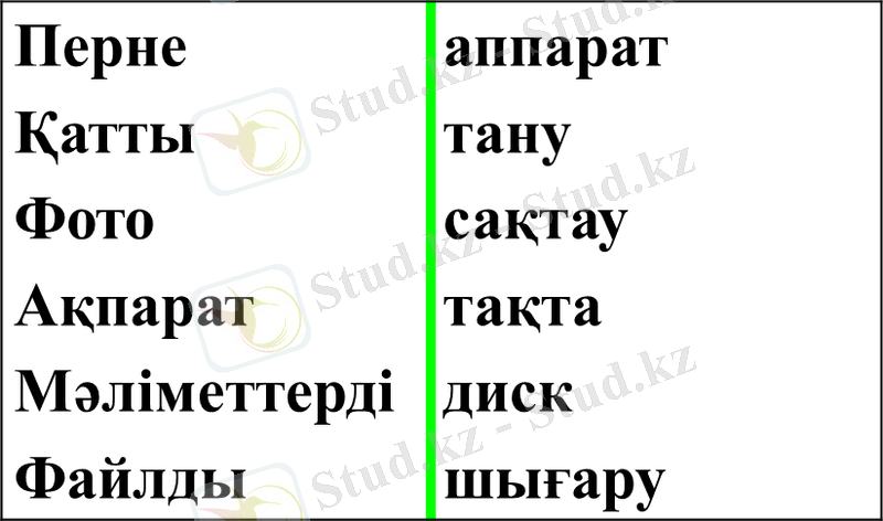 Берілген тапсырмада орындары ауыстырылып берілген сөздердің жұбын тауып, оны тақтада көрсету керек.