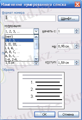 Кейде нөмір ретінде а, в, с әріптерін немесе І, ІІ, ІІІ рим сандарын қойып шығуы қажет болады. Басқаша айтқанда, тізімді белгілі бір параметрлер бойынша (нөмірлеу, әріп, бастапқы нөмір және т. б. ) баптау керек.