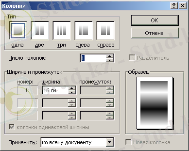 - Басқа бағандар бұйрығының сұхбаттық терезесіндегі батырмамен бағанның санын, мөлшерін және сыртқы пішінін баптайды;