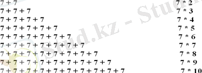 - 2 кереметтікөру үшін 7ге көбейту және бөлу кестесін жазу.