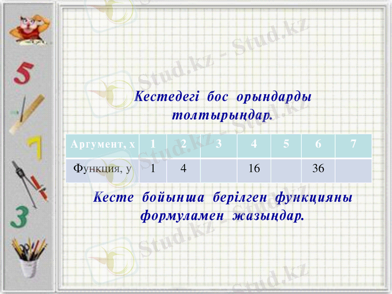Суреттер арқылы функционалдық тәуелділікті анықтау.