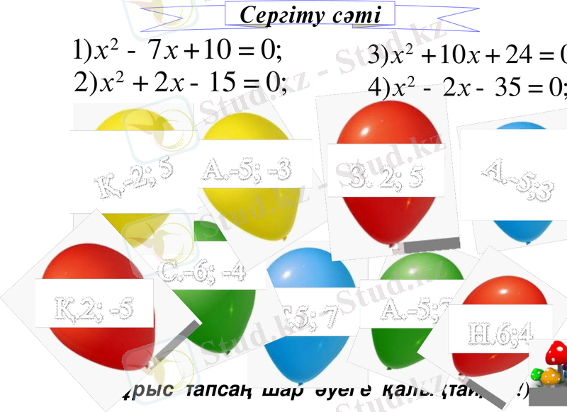 квадрат теңдеулердің түбірлерін тап. Жауабын дұрыс тапсаң шар әуеге қалықтайды.