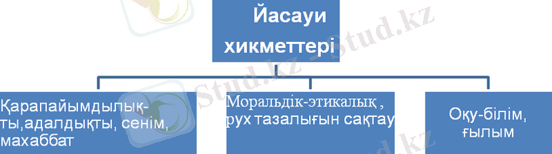 Ж: А. Йасауи хикметтері әділдікке, қызыққұмарлық, дүниеқорлықтан безуге, тазалыққа , адалдыққа, имандылыққа , арам нәпсіден тыйылуға