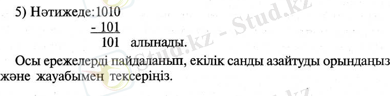 - Арифметикалық амалдарды орындап, оның дұрыс орындалғанын тексеріңіз:а) 1110+1001; ә) 1110-1001; б) 1110+9; в) 1010-3: