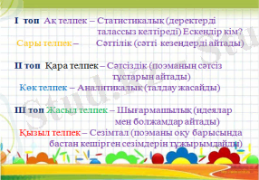 Ойлаудың “6 телпек”әдісі. Жаңа сабақтың тақырыбы мен мақсаты.