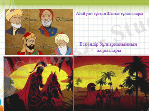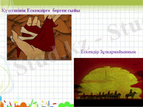 2. Абайдағы Ескендірдің келбеті туралы біледі;