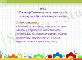 Абайдың Ескендір поэмасының тақырыбы мен көркем-идеялық маңызы: әдістемелік сабақ жоспары