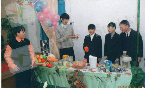 І жүргізуші: Кезекті денсаулықтың жаңасын ақшаға қайдан табасың деп әркез шырын ішіп, денсаулығын жаңартып, жасартып жүрген Әсемді ортаға шақырайық.