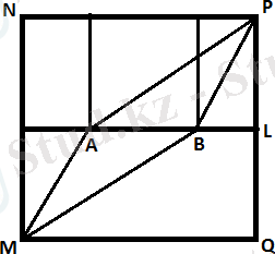 MNPQ қабырғасы 6 см-ге тең квадрат . А мен В квадратты қақ бөлетін түзу бойында орналасқан . Нүктелер MAP және MBP сынығы квадратты аудандары бірдей 3 бөлікке бөледі. АВ -ның ұзындығын табыңыз.