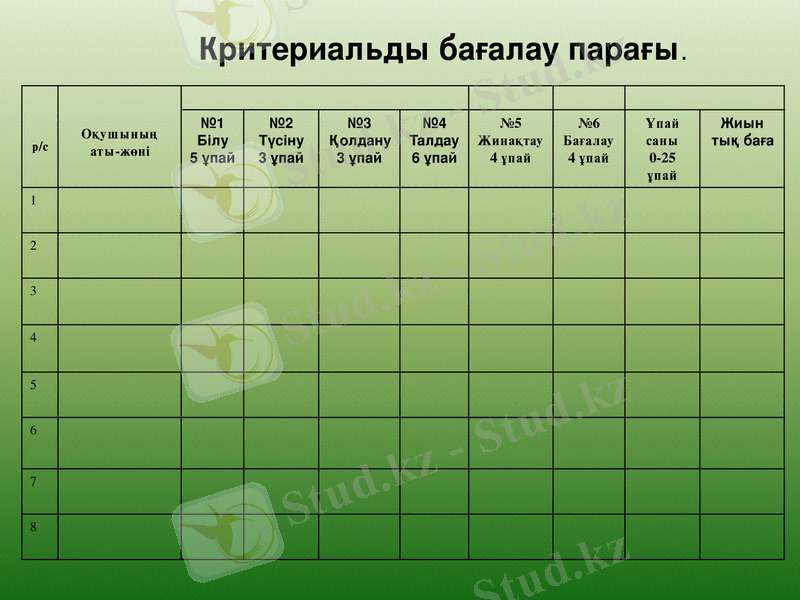 Критерийлер бойынша бағалау