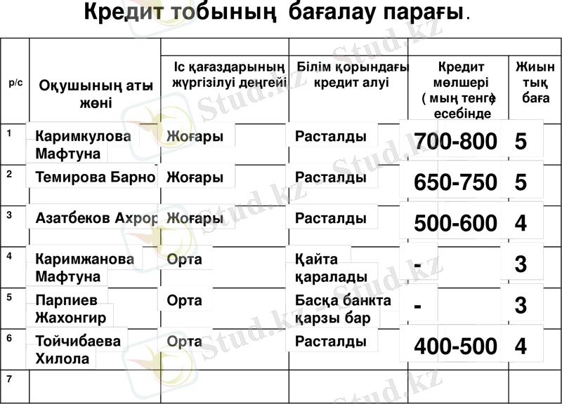 Бағалау.