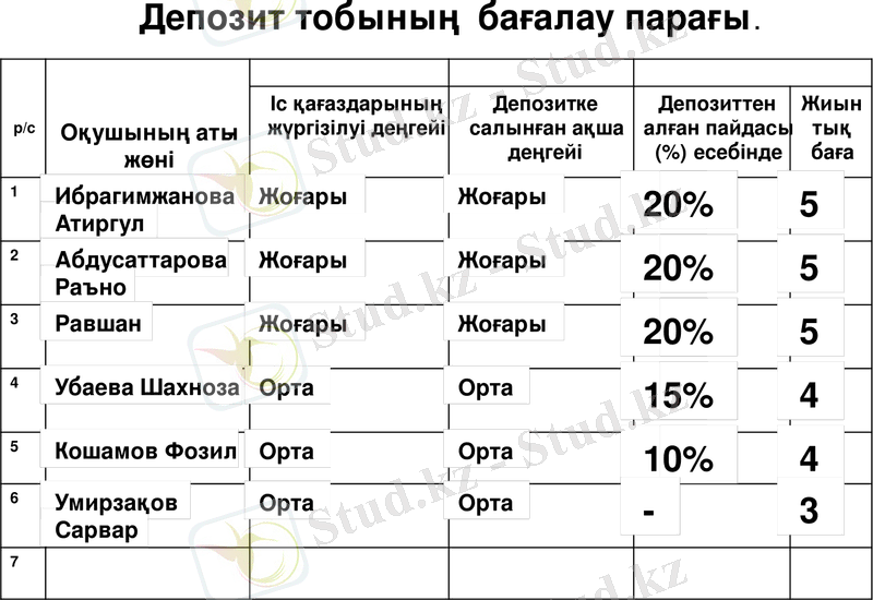 “Депозит” дегеніміз Банк қорындағы сіздің салымыңыз, жылдық өсімі 20 пайыз.