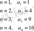 формуласымен, 1, 4, 9, 16, 25, . . . ,