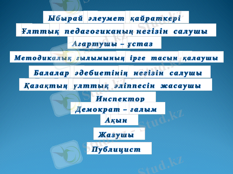 Рефлексия кезеңі: Ы. . Алтынсарин шығармаларындағы идеяларды қандай мақал-мәтелдер арқылы білдірер едіңдер.
