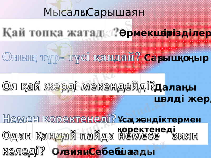 Бекіту. Қатар бойынша тапсырма беру. Кез келген жануарды жоспар бойынша сипатта.
