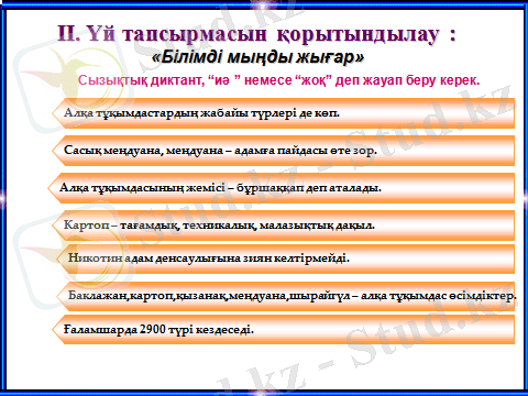 Үй тапсырмасын тексеру: «зымыран сұрақтар».