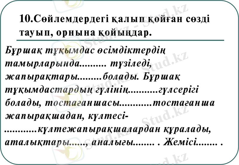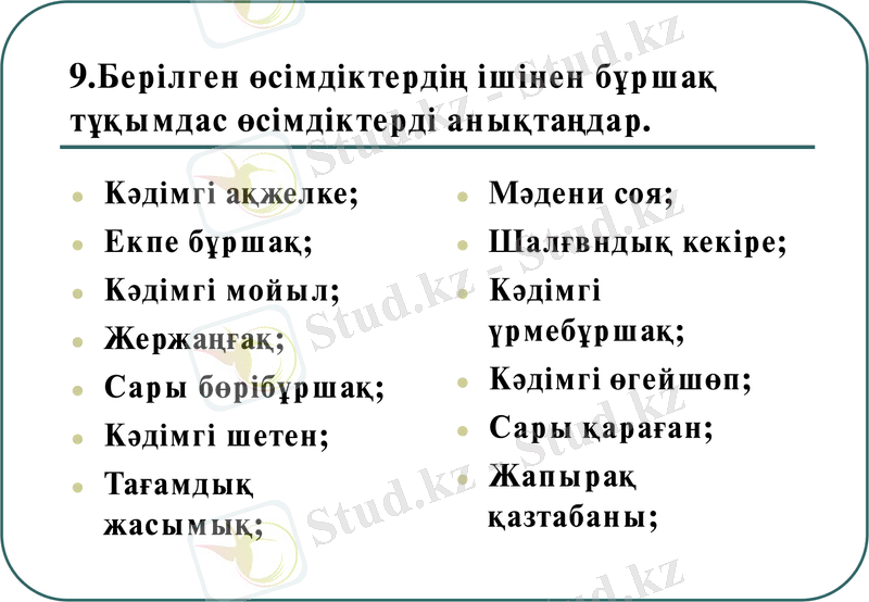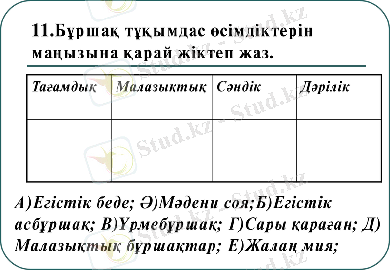 А. бұршақтұқымдастардың құрылыс ерекшеліктерін біледі.