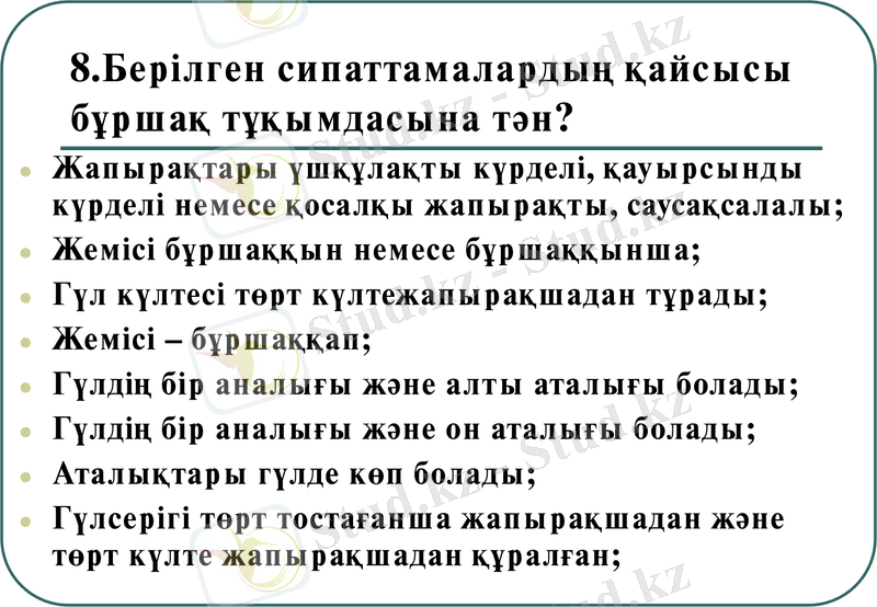 В. Гүлінің құрылысын, жемістерінің ерекшеліктерін ажыратады.