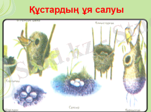 Сабақтың мақсаты: Құстар туралы мәлімет беру, тақырып бойынша сөйлеу дағдыларын қалыптастыру.