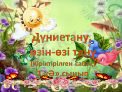 Кембридж бағдарламасынының 7 модулінің бірі «Оқу мен оқытудағы жаңа тәсілдер АҚТ -мен жұмыс» әдісітерін пайдалана отырып 1 «Ә» сыныбында «Дүниетану» сабағын «Өзін-өзі тану» сабағымен кіріктіріп өткіздік. Пән мұғалімі Омирбаева М. Р. және «Өзін-өзі тану» пәні мұғалімі Жунусова .