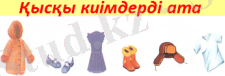 Интербелсенді тақтада берілген сурет бойынша жұмыс. Қысқы киімдердің аттарын жазып жуан дауысты дыбыстардың астын сызу.