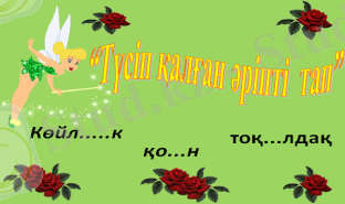 Түсіп қалған әріпті тауып қандай дыбыс екенін ажырату.