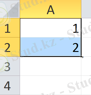 - Мәлімет жазылған диапазон немесе екі ұяшық белгіленеді;