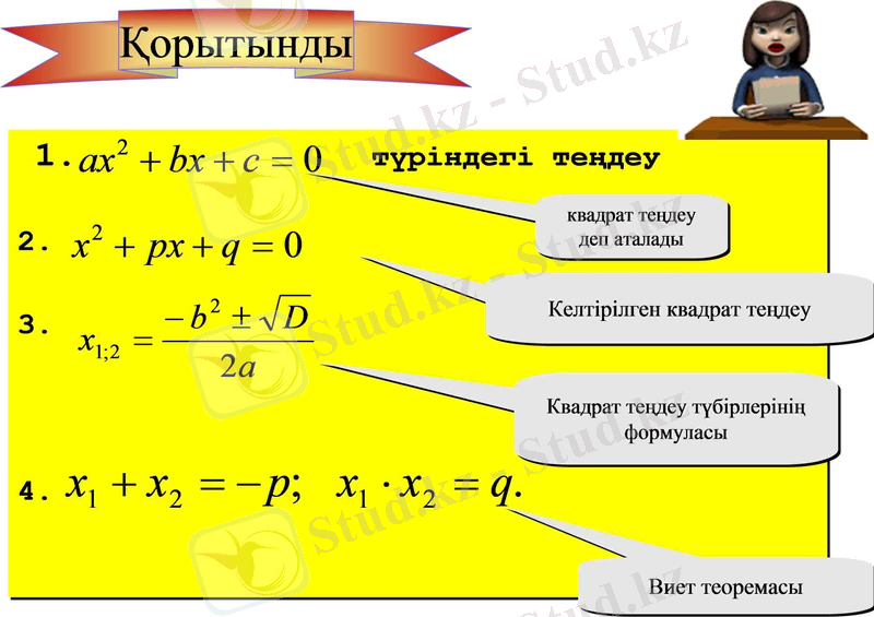 - Келтірілген квадрат теңдеу деп қандай теңдеуді айтамыз?