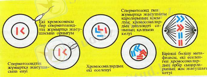 Жануарлардағы ұрықтану сатысы мен жұмыртқа жасушасының бөліне бастауы