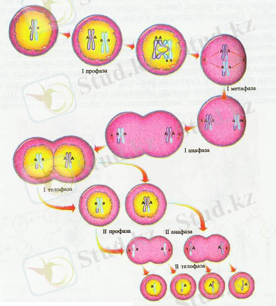 Суреттің негізінде мейоздың бірінші және екінші бөлінуіне сипаттама беріңдер .