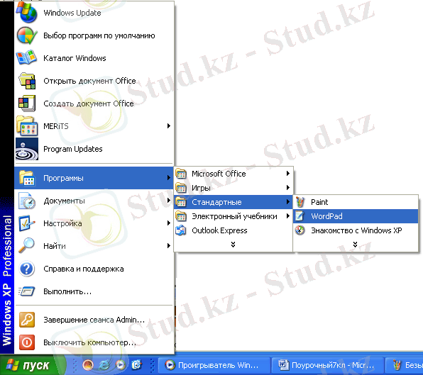 - Бас менюдетышқанның (Программы) командасына орналастырамыз, сонда бағыныңқы меню шығады