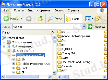 - Мой компьютерқапшығындағы дискСбелгішесіне тышқанның нұсқауышын орналастырып, екі рет шертіп, Сдискісінің терезесін ашамыз