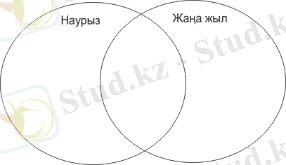 Оқытушының сөзі: Жарайсыңдар. Наурыз туралы біраз мәлімет біледі екенсіңдер. Сіздер бағанадан «Наурызды» жыл басы деп айтып отырсыздар, сонда Қазақстанда жаңа жыл неше рет тойланады? Енді бағанадан айтып жатқан наурыз туралы білімімізді жинақтайық. Қазір сіздермен Венн диаграммасы бойынша жұмыс жасайық.