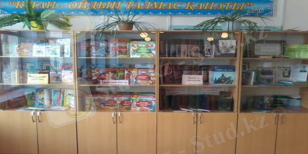 Кітапхана мектептің екінші қабатында 125, 15кв. м көлемі кабинетінде орналасқан.