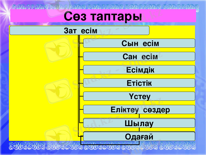 Сабақтың тақырыбы: Сөз таптары. Зат есім.