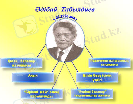 Әрі ақын, әрі жазушы Әдібай Табылдиев 1926 жылдың 1 ақпанында Жамбыл облысы Т. Рысқұлов ауданында дүниеге келген.