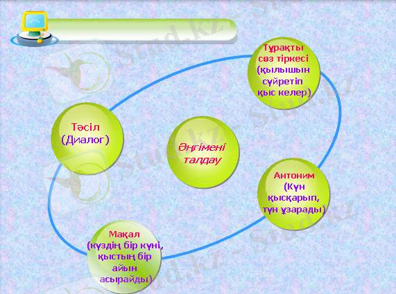Әңгімеге талдау жасау. Оқушыларға әңгімедегі мақалдарды, тұрақты сөз тіркестерді, антонимдерді, диалогтарды таптыртып, оқыту. Жауаптарын топтастыру.