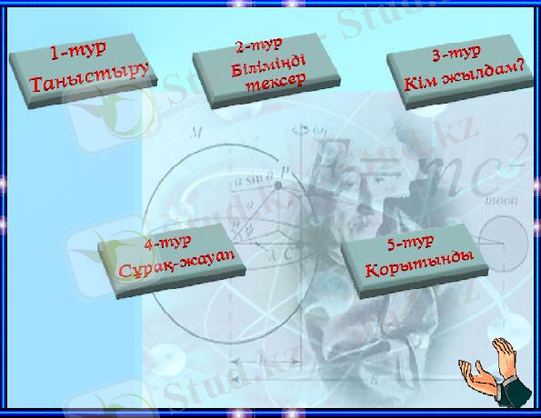 Керекті құрал-жабдықтар: компьютер, видеопроектор, слайдтар.